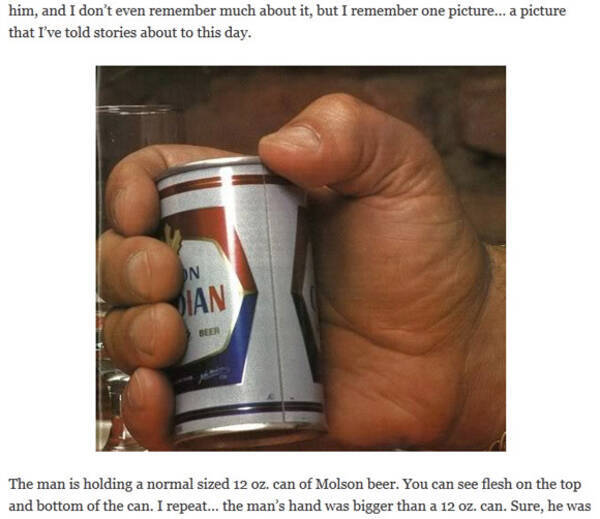 アンドレ ザ ジャイアントが缶ビールを持つと どれだけ巨人だったか一発でわかる写真 らばq