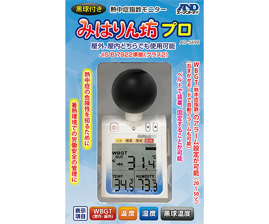 エー アンド デイ a d 黒球付き 熱中症指数モニター みはりん坊プロ ad 5698. 通常価格 22 398円 通常出荷日 在庫品1日目 当日出荷可能. エー アンド デイの黒球付き熱中症指数モニター みはりん坊プロ ad 5698を始め fa 金型部品 工具 工場消耗品の通販ならmisumi vona. 黒球付き熱中症指数計 熱中症指数モニター ad 5698.