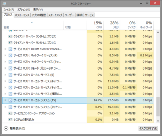 サービスホスト ローカルシステム 15 というプロセスが常にcpuを使 Yahoo 知恵袋