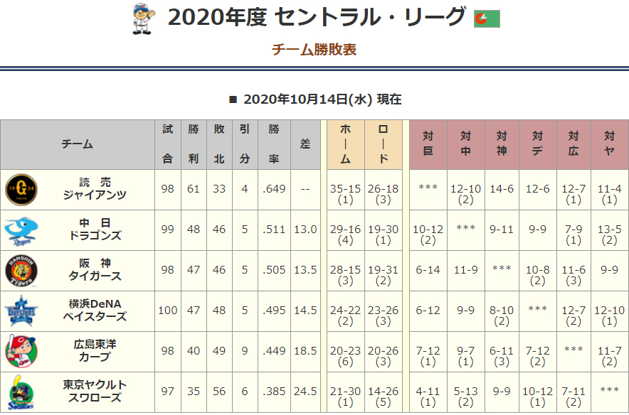 セリーグ8 16順位表 日刊わしら Hiroshima Daily Washira