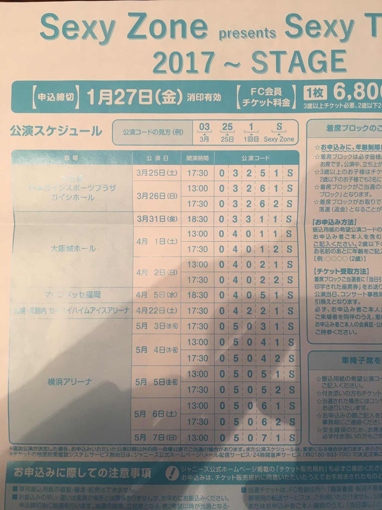 Sexy Zone 2012年コンサート申し込み用紙 新品 中古のオークション モバオク