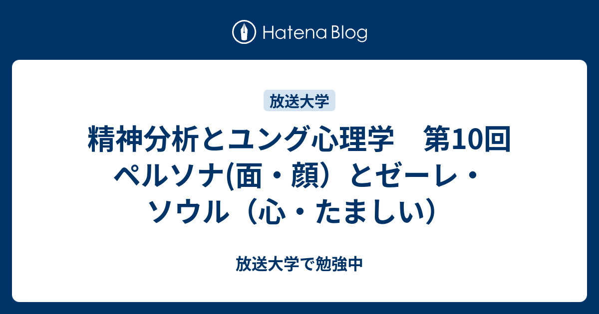 精神分析とユング心理学 第10回 ペルソナ 面 顔 とゼーレ ソウル 心 たましい 放送大学で勉強中