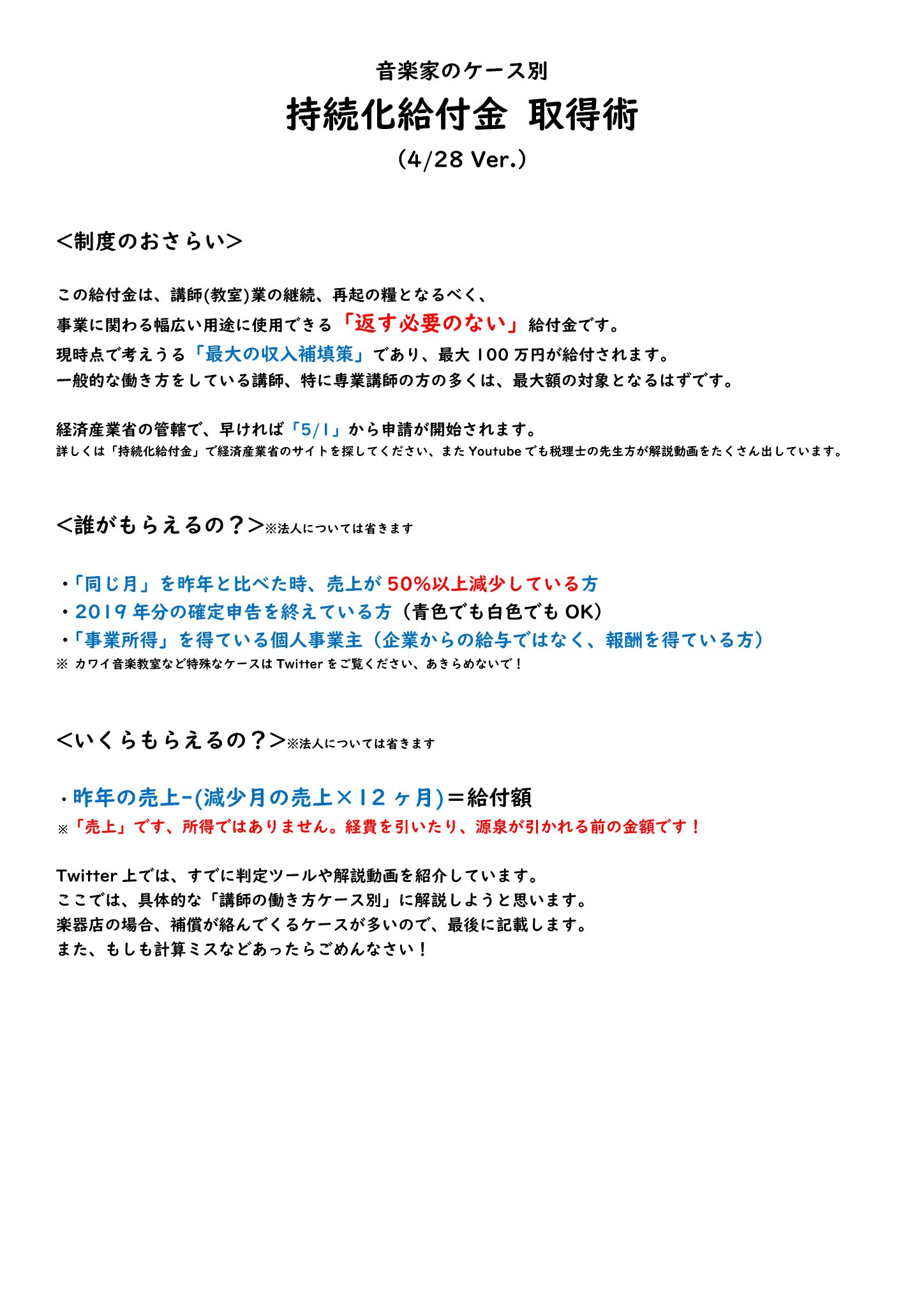 コロナ Vs 音楽教室 On Twitter 持続化給付金 について 音楽講師 演奏家 に特化したケース別シュミレーションを書いてみました 現時点 最大の支援策です 間もなく申請が始まります これまでご紹介した判定ツールや 動画などと併せてご活用ください 音楽