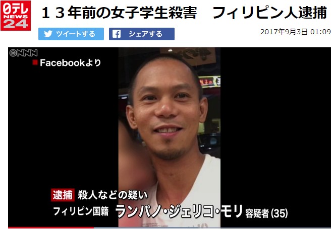 ぶんぐのぶろぐ 13年前の原田実里さん 21 が殺害された事件でフィリピン人のランパノ ジェリコ モリ容疑者 35 Facebook