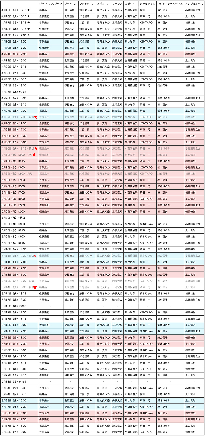 レ ミゼラブル 2019のプリンシパル キャスト スケジュール発表 平成最後 新元号最初の公演はe が貸切 Spice エンタメ特化型情報メディア スパイス