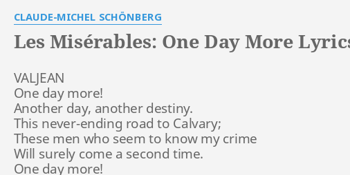Les Miserables One Day More Lyrics By Claude Michel Schonberg Valjean One Day More